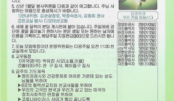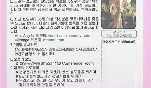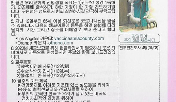 01-10-21 주일 교회 소식