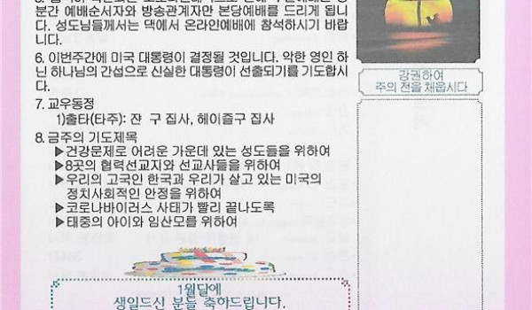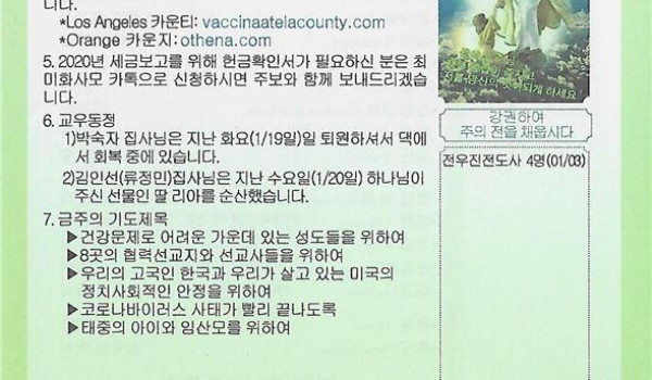 01/17/21 주일 교회 소식