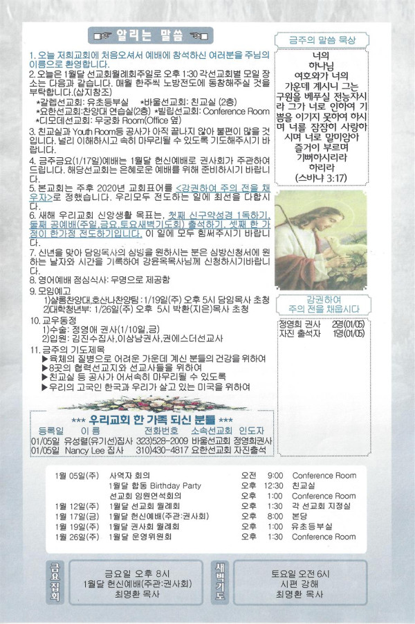 01/12/20 주일 교회 소식 페이지 정보 작성자 댓글 0건 조회 2,542회 작성일 20-01-11 10:07 목록 본문 이전글01/19/20 주일 교회 소식 20.01.18 다음글01/05/20 주일 교회 소식 20.01.04 댓글 0 댓글목록 등록된 댓글이 없습니다. 목록