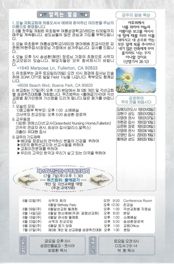 06/23/19 주일 교회 소식 페이지 정보 작성자 댓글 0건 조회 3,361회 작성일 19-06-22 11:56 목록 본문 이전글06/30/19 주일 교회 소식 19.06.29 다음글06/16/19 주일 교회 소식 19.06.15 댓글 0 댓글목록 등록된 댓글이 없습니다. 목록