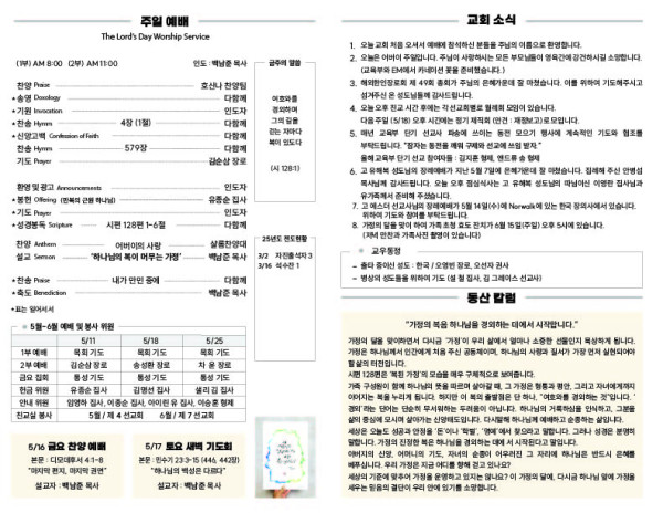 05/11/25 교회 주보 페이지 정보 작성자 아름다운동산교회 댓글 0건 조회 1,080회 작성일 25-05-11 12:17 목록 본문 05/11/25 이전글05/18/25 교회 주보 25.05.17 다음글5/11/25 교회주보 25.04.27 댓글 0 댓글목록 등록된 댓글이 없습니다. 목록