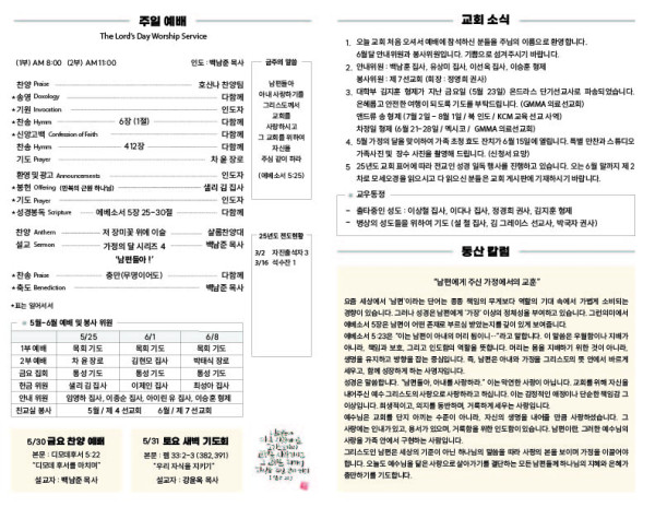 05/25/25 교회 주보 페이지 정보 작성자 아름다운동산교회 댓글 0건 조회 878회 작성일 25-05-24 06:41 목록 본문 05/25/25 이전글06/01/25 교회 주보 25.05.31 다음글05/18/25 교회 주보 25.05.17 댓글 0 댓글목록 등록된 댓글이 없습니다. 목록
