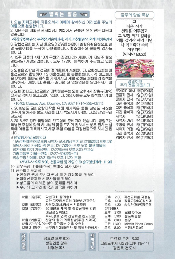 12/10/17 주일 교회 소식 페이지 정보 작성자 댓글 0건 조회 2,748회 작성일 17-12-08 09:17 목록 본문 이전글12/17/17 주일 교회 소식 17.12.16 다음글12/03/17 주일 교회 소식 17.12.02 댓글 0 댓글목록 등록된 댓글이 없습니다. 목록