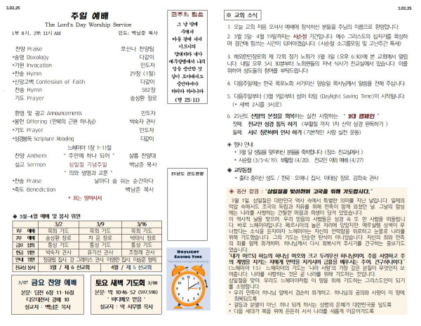03/02/25 교회 주보 페이지 정보 작성자 아름다운동산교회 댓글 0건 조회 1,296회 작성일 25-03-01 11:23 목록 본문 03/02/25 이전글03/16/25 교회 주보 25.03.15 다음글02/23/25 교회 주보 25.02.22 댓글 0 댓글목록 등록된 댓글이 없습니다. 목록