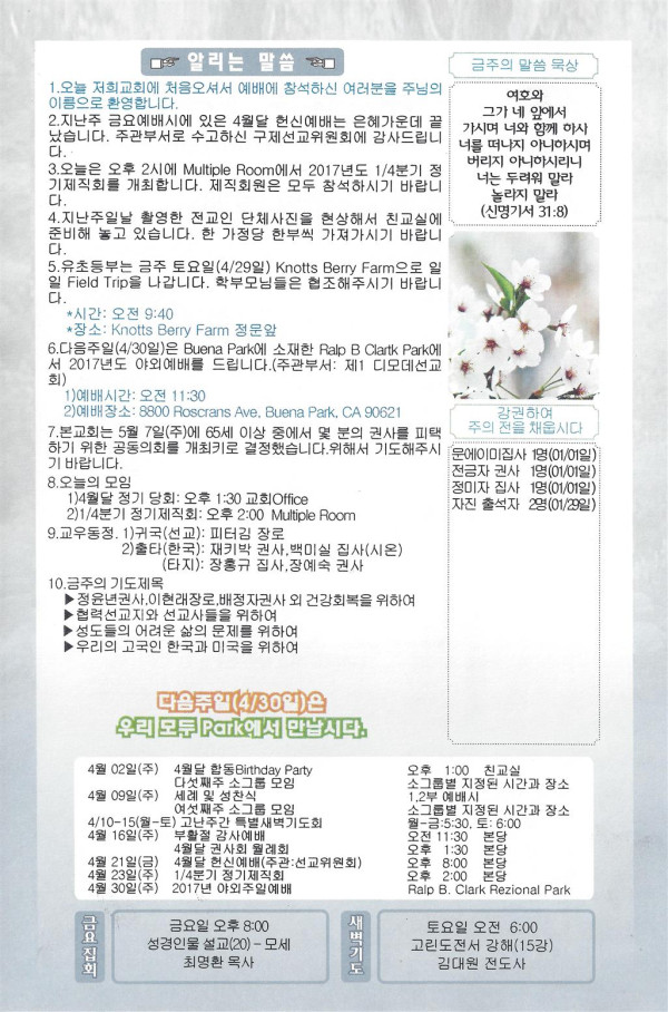 04/23/17 주일 교회 소식 페이지 정보 작성자 댓글 0건 조회 3,063회 작성일 17-04-22 00:00 목록 본문 이전글04/30/17 주일 교회 소식 17.04.29 다음글04/16/17 부활감사주일 교회 소식 17.04.15 댓글 0 댓글목록 등록된 댓글이 없습니다. 목록