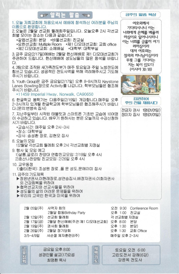 02/12/17 주일 교회 소식 페이지 정보 작성자 댓글 0건 조회 2,608회 작성일 17-02-11 13:27 목록 본문 이전글2/19/17 주일 교회 소식 17.02.18 다음글02/05/17 주일 교회 소식 17.02.04 댓글 0 댓글목록 등록된 댓글이 없습니다. 목록