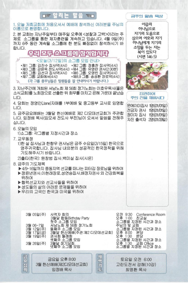 03/12/17 주일 교회 소식 페이지 정보 작성자 댓글 0건 조회 2,886회 작성일 17-03-11 10:28 목록 본문 이전글03-19-17 주일 교회 소식 17.03.18 다음글03/05/17 주일 교회 소식 17.03.04 댓글 0 댓글목록 등록된 댓글이 없습니다. 목록