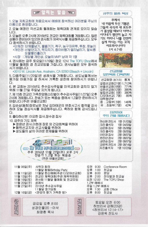 11/13/16 주일 교회 소식 페이지 정보 작성자 댓글 0건 조회 2,741회 작성일 16-11-12 00:00 목록 본문 이전글11/20/16 주일 교회 소식 16.11.19 다음글11/06/16 주일 교회 소식 16.11.05 댓글 0 댓글목록 등록된 댓글이 없습니다. 목록