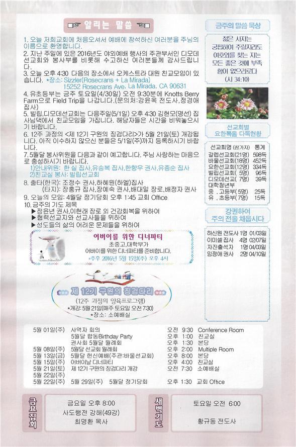 - 이전글05/01/16 주일 교회 소식 16.04.30