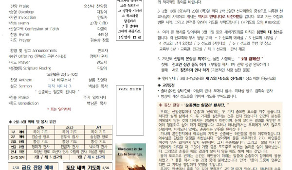 02/16/25 교회 주보