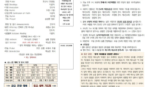 01/19/25 교회 주보