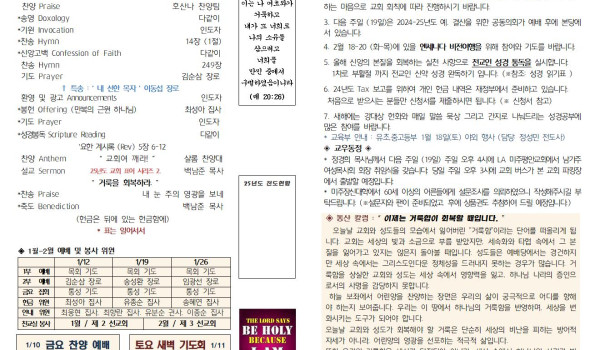 01/26/25 교회 주보