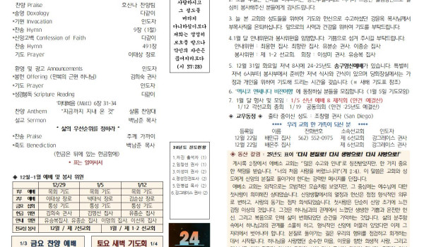12/29/24 교회 주보