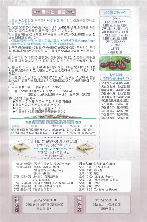 - 다음글07/05/15 주일 교회 소식 15.07.04