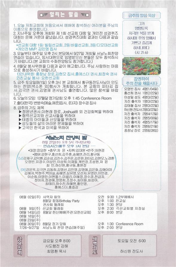 07/26/15 주일 교회 소식