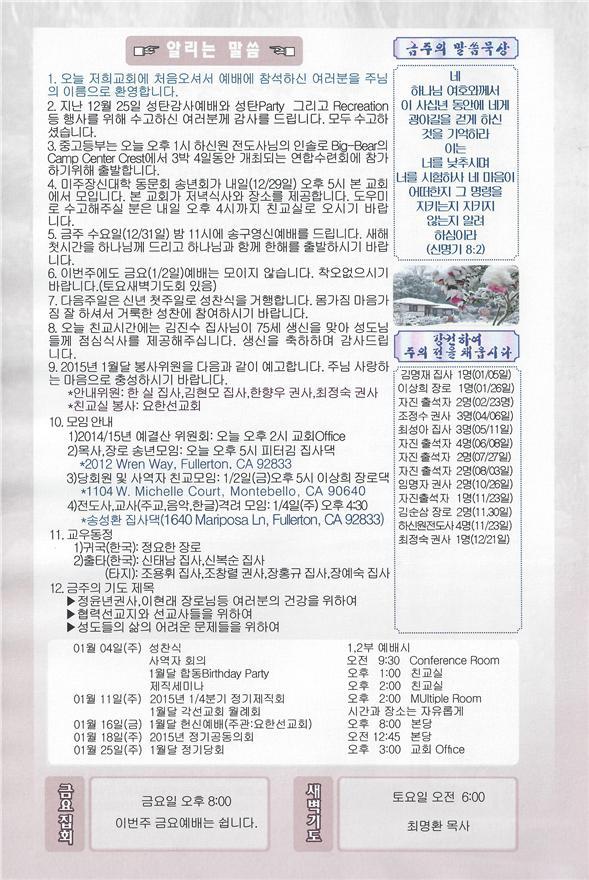 12/28/14 주일 교회 소식 > 교회주보