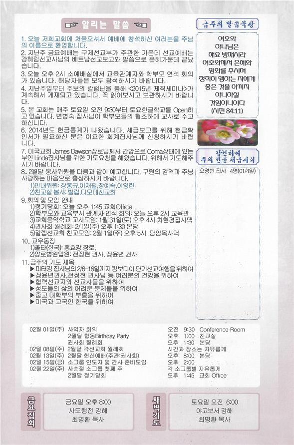 - 이전글02/01/15 주일 교회 소식 15.01.31