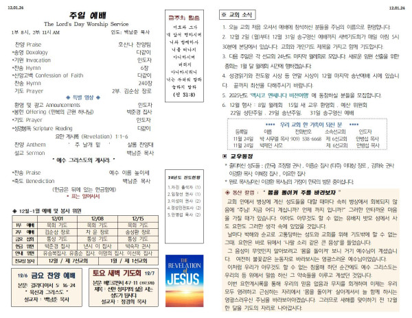 12/01/24 교회 주보 페이지 정보 작성자 아름다운동산교회 댓글 0건 조회 1,823회 작성일 24-11-30 09:07 목록 본문 12/01/24 이전글12/08/24 교회 주보 24.12.07 다음글11/24/24 교회 주보 24.11.23 댓글 0 댓글목록 등록된 댓글이 없습니다. 목록