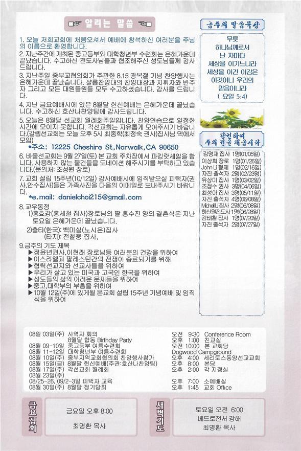 바울선교회는 9월 27일(토) 본 교회 주차장에서 파킹랏세일을 합니다. 사용하지 않는 물건들을 도네이션 해주시기를 부탁하고 있습니다.(문의처: 조성원 장로)