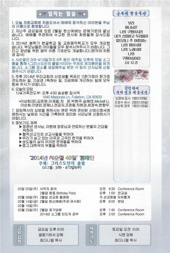 02/16/14 주일 교회 소식