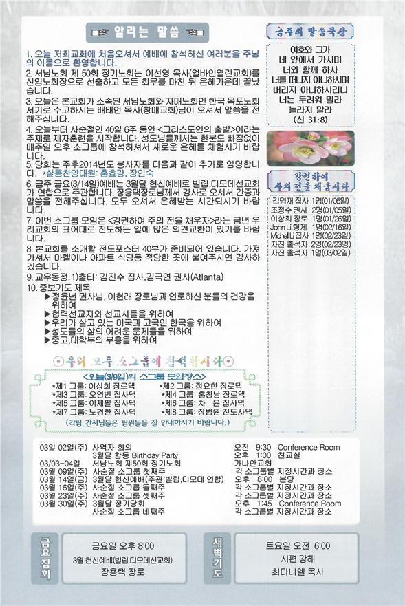03/09/14 주일 교회소식 > 교회주보