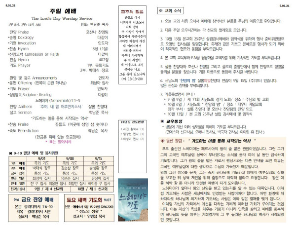 09/01/24 교회 주보 페이지 정보 작성자 아름다운동산교회 댓글 0건 조회 2,427회 작성일 24-08-31 06:54 목록 본문 09/01/24 이전글09/08/24 교회 주보 24.09.07 다음글8/25/24 교회 주보 24.08.24 댓글 0 댓글목록 등록된 댓글이 없습니다. 목록