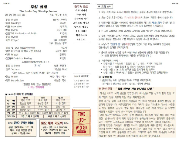 09/08/24 교회 주보 페이지 정보 작성자 아름다운동산교회 댓글 0건 조회 2,504회 작성일 24-09-07 06:52 목록 본문 09/08/24 이전글09/15/24 교회 주보 24.09.14 다음글09/01/24 교회 주보 24.08.31 댓글 0 댓글목록 등록된 댓글이 없습니다. 목록