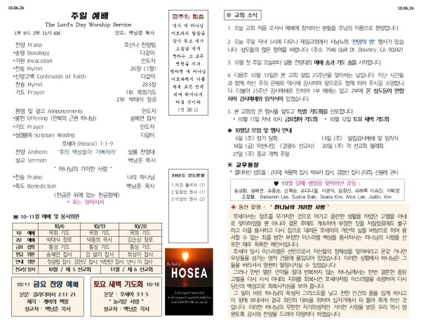 10/06/24 교회 주보 페이지 정보 작성자 아름다운동산교회 댓글 0건 조회 2,228회 작성일 24-10-05 06:47 목록 본문 10/06/24 이전글10/27/24 교회 주보 24.10.26 다음글09/29/24 교회 주보 24.09.28 댓글 0 댓글목록 등록된 댓글이 없습니다. 목록