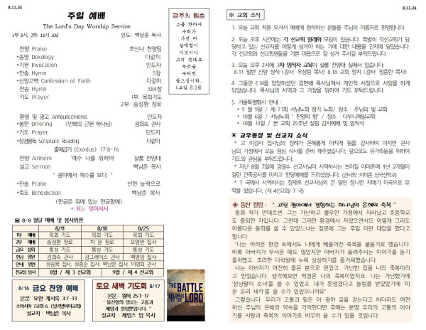 08/11/24 교회 주보 페이지 정보 작성자 아름다운동산교회 댓글 0건 조회 2,379회 작성일 24-08-10 06:59 목록 본문 08/11/24 이전글08/18/24 교회 주보 24.08.17 다음글08/04/24 교회 주보 24.08.03 댓글 0 댓글목록 등록된 댓글이 없습니다. 목록