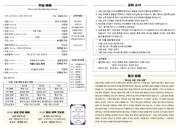 10/19/25 교회 주보 페이지 정보 작성자 아름다운동산교회 댓글 0건 조회 291회 작성일 25-10-25 07:21 목록 본문 10/19/25 교회 주보 이전글10/26/25 교회 주보 25.10.25 다음글10/12/25 교회 주보 25.10.11 댓글 0 댓글목록 등록된 댓글이 없습니다. 목록