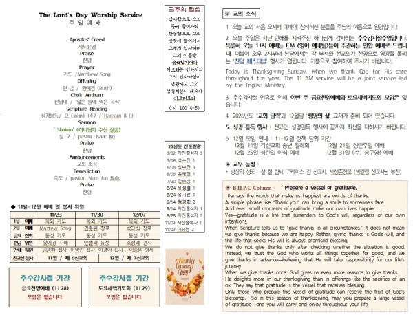 11/23/25 교회 주보 페이지 정보 작성자 아름다운동산교회 댓글 0건 조회 102회 작성일 25-12-06 08:04 목록 본문 11/23/25 이전글12/07/25 교회 주보 25.12.06 다음글11/30/25 교회 주보 25.12.06 댓글 0 댓글목록 등록된 댓글이 없습니다. 목록